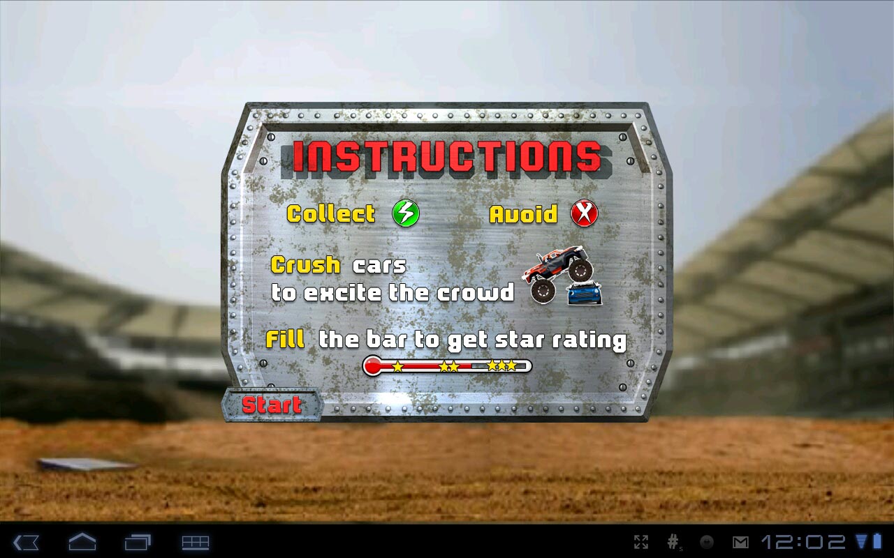 Вы управляете большим монстро-джипом. Гоняем на всех парах, разрушаем все в хлам, и разбиваем поверхность земли. Следите за количеством энергии, которую можно подбирать по пути или зарабатывать, когда вы разрушаете стоящие на пути автомобили. Чем больше ее останется в конце трека, тем больше звезд вы заработаете. Игра сделана с великолепной, красочной графикой, простым геймплеем, огромным разнообразием секретов и отличным стилевым исполнением. Наклоны монстро-джипа в полете управляются G сенсором.