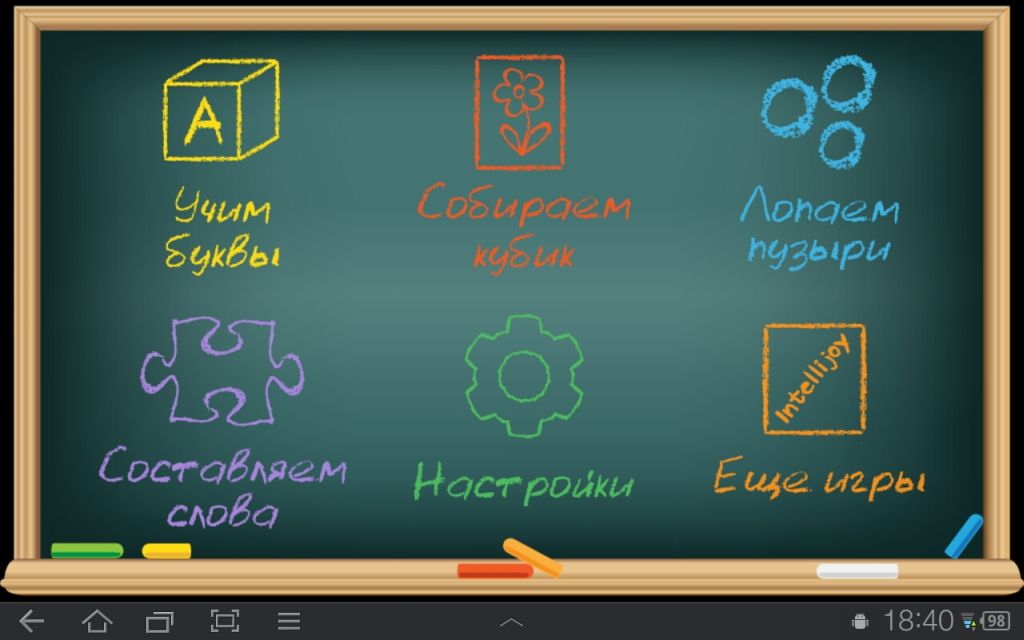 Великолепное развивающее приложение для детей, которое поможет Вашему ребёнку освоить алфавит, собрать кубик или заданное слово, а так же лопнуть пузырь с буквой! Всё сделано удобно и красочно. Для более легкого восприятия буквы тут произносятся как при чтении, что помогает быстрее ребенку научиться, именно, читать.