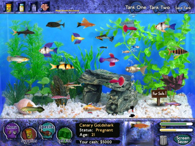 Выращивайте виртуальных рыб и выводите новые их породы в реальном времени. Вы должны будете продавать своих рыб в виртуальном зоомагазине, чтобы иметь средства для покупки различных припасов, лекарств, украшений для вашего аквариума и исследовательских технологий, которые позволят вам открывать новые всё более экзотические виды рыб.