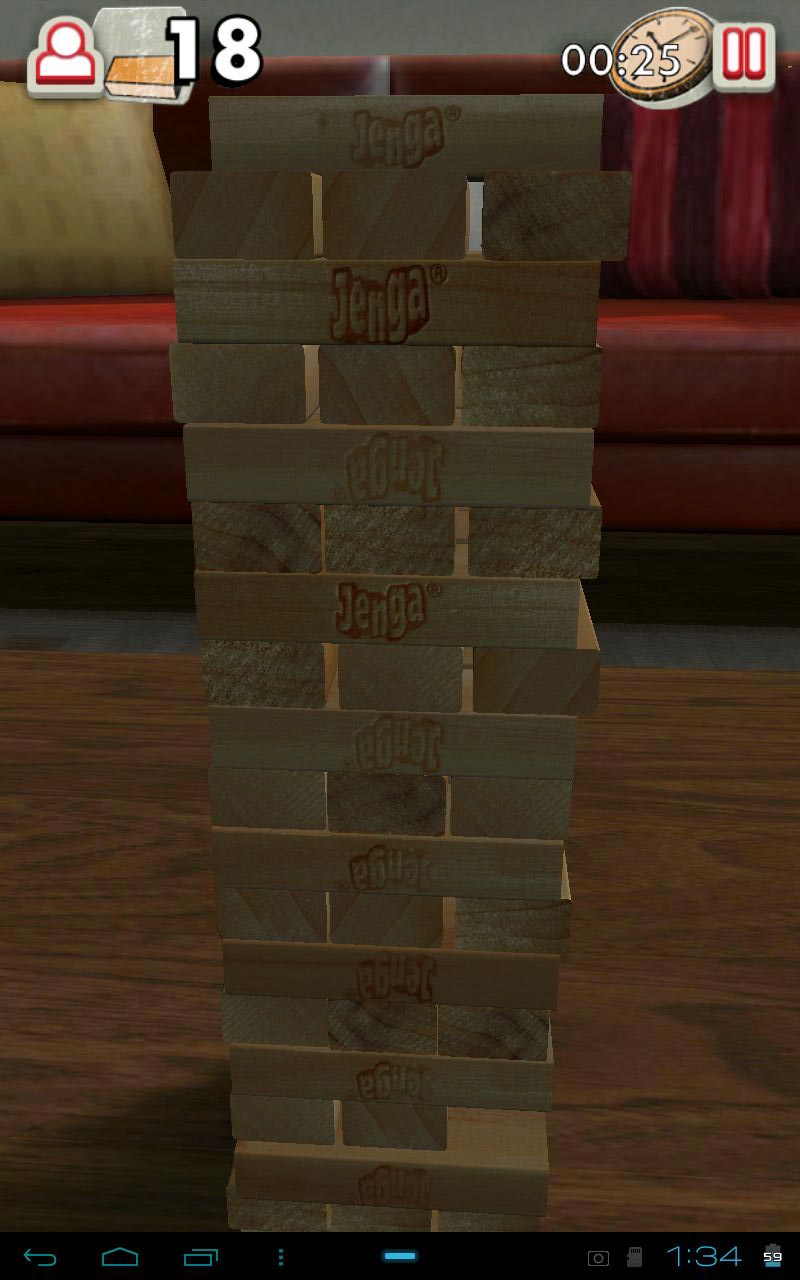Jenga — отличная игра на логику и физику. В игре вам предстоит из данной вам башни, путем перекладывания кирпичей снизу вверх построить, как можно более высокую конструкцию и при этом она должна оказаться устойчивой. В игре доступно 54 блока, длина которых в три раза больше чем ширина, а высота в два раза меньше ширины. При постройке башни блоки разрешается вынимать из нижних слоев, кроме предпоследнего слоя. Для постройки следующего этажа, предыдущий должен быть полностью достроен. Игра очень увлекательная и заставит ваше серое вещество хорошенько подумать!
