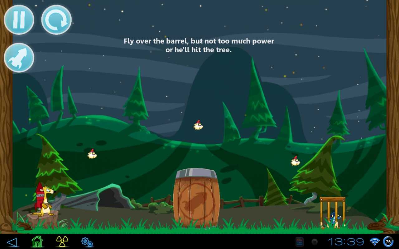 В лесной школе, в которой преподают предмет "охота на кур" происходит трагедия. При практических занятиях, в которых молодые еноты отрабатывают полученные навыки, все пошло совсем не по сценарию, и они попадают в ловушки! Ваша задача освободить несчастных малышей, попутно прихватив с собой пару глупых куриц! Наследник Злых Птиц, в котором надо просчитывать траекторию полета, с красивой графикой, интересным сюжетом и разнообразными уровнями!