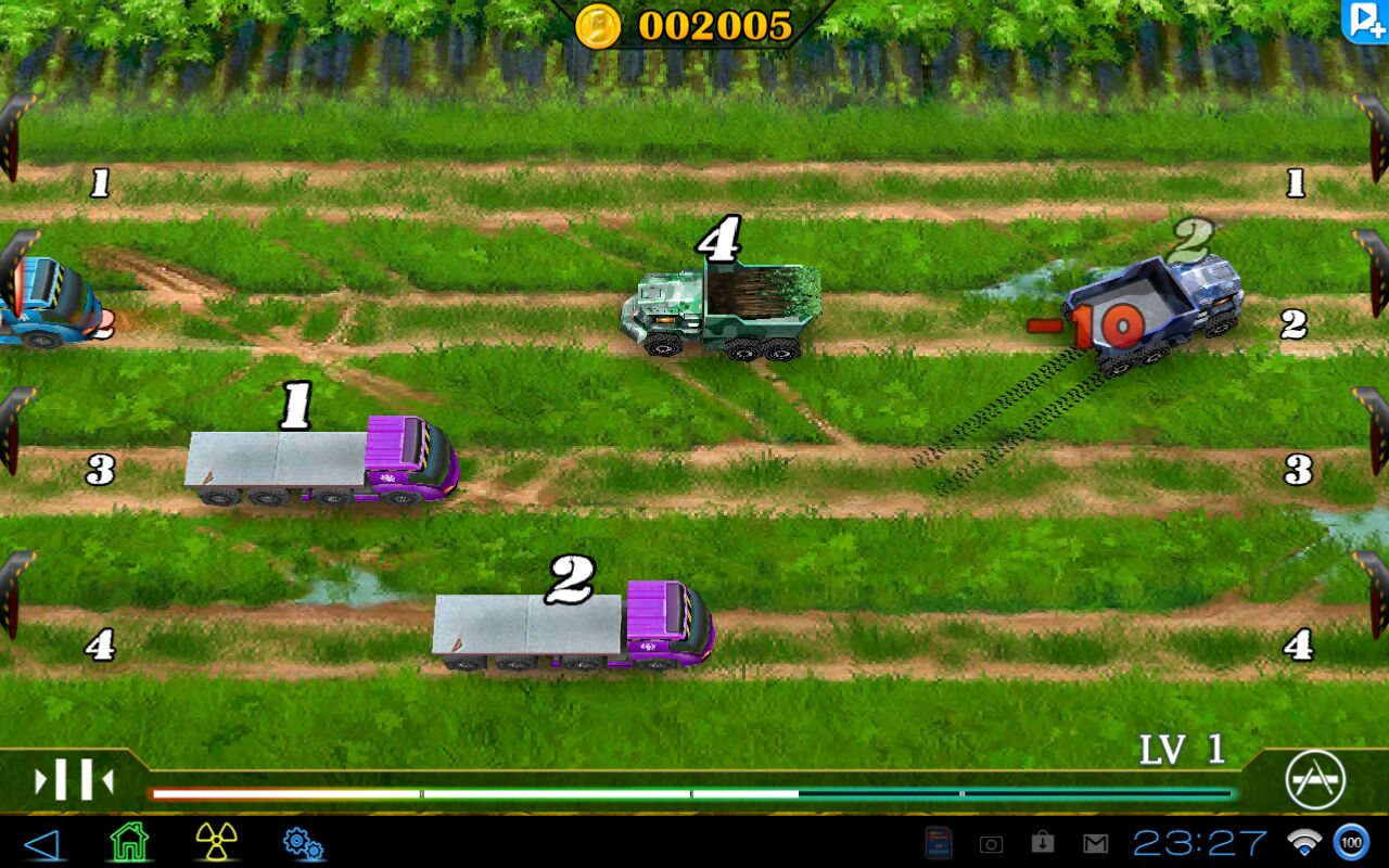 Проверьте свои рефлексы с Krazy Truckin, где необходимо управлять движением грузовиков по 4 трассам одновременно, направляя их на указанную дорогу, при этом, не допуская столкновения со встречными грузовиками! Грузовикам предстоит двигаться через траву, грязь, снег и другие поверхности. Правильно и безошибочно направляя грузовики, вы зарабатываете золотые монетки, на которые можете приобрести новые возможности и предметы. Посмотрите, как долго вы сможете продержаться!