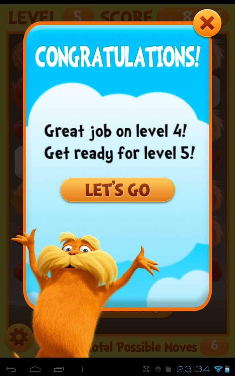 Официальная игра из популярного мультфильма Lorax! Этот популярный тип игры появился с первыми мобильными устройствами, и популярность этого жанра не имеет границ, доказательство тому непрекращающийся поток игр - головоломок этого жанра! Ваша задача, меняя местами две соседние фигуры выстроить цепочку из одинаковых фигур минимум из трех штук. Все просто, красочно и интересно!