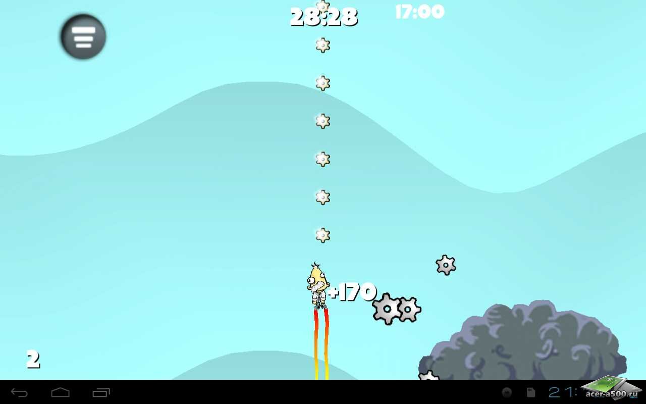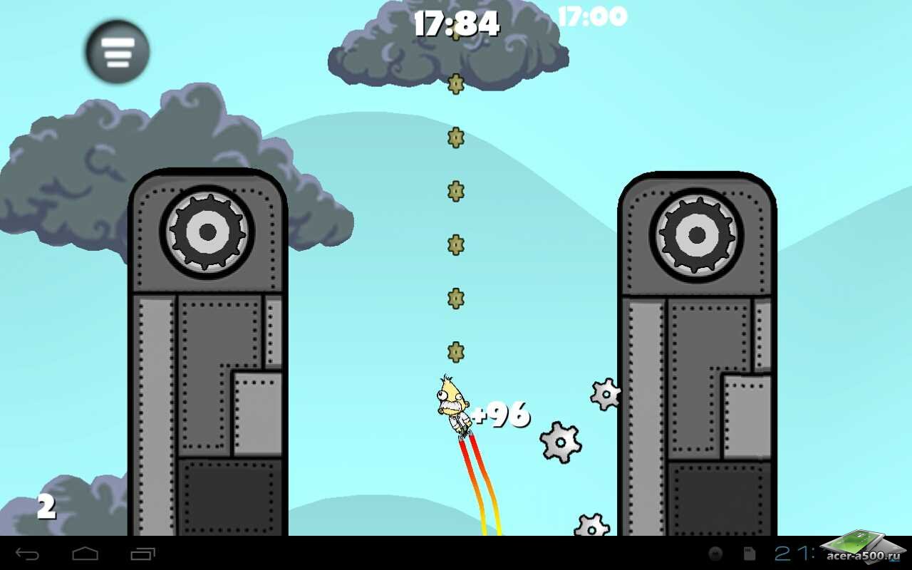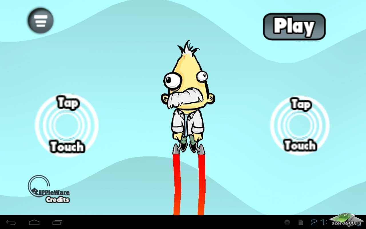 Сумасшедший изобретатель решил сам испытать свое последнее изобретение и вы должны ему в этом помочь! Ваша задача управлять летящим профессором у которого на спине висит реактивный ранец, собирая бонусы и уворачиваясь от разнообразных препятствий! Выбирайте удобное для вас управление и играйте в отличную аркаду с веселым сюжетом! Управление в игре осуществляется двумя способами: сенсорными кнопками и акселеромтером!