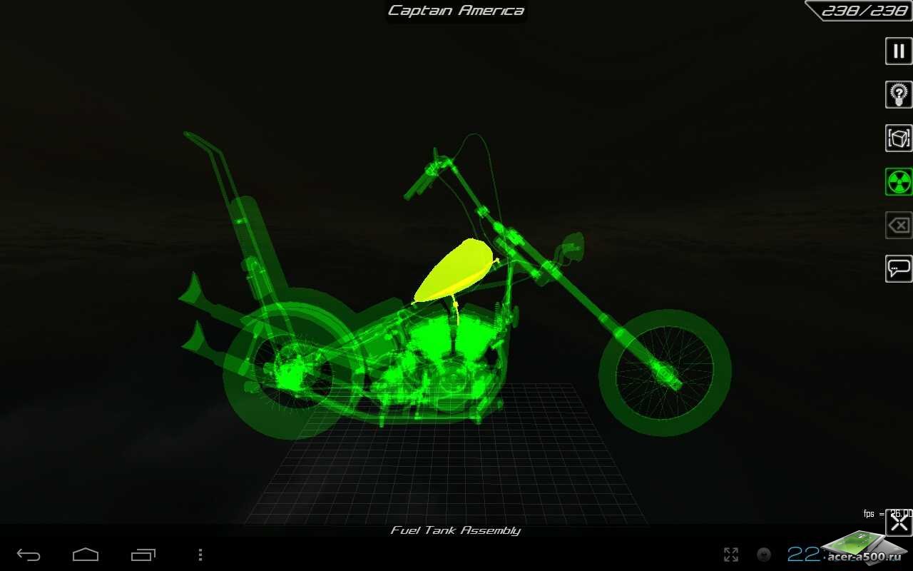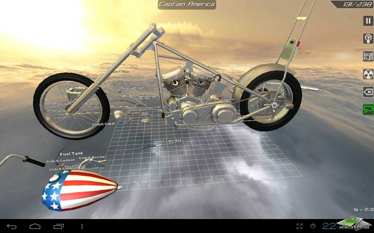 Очередное приложение, в котором вам предстоит изучать устройство различных вещей, на этот раз классического американского чоппера! Ваша основная задача - быстро и грамотно собрать мотоцикл, разбросанный по деталям на виртуальном столе, которые вы должны в определенной последовательности навешивать на раму мотоцикла до тех пор, пока перед вами не появится готовое изделие! Полностью трехмерная графика, простое управление камерой позволит вам получить удовольствие от процесса сборки!