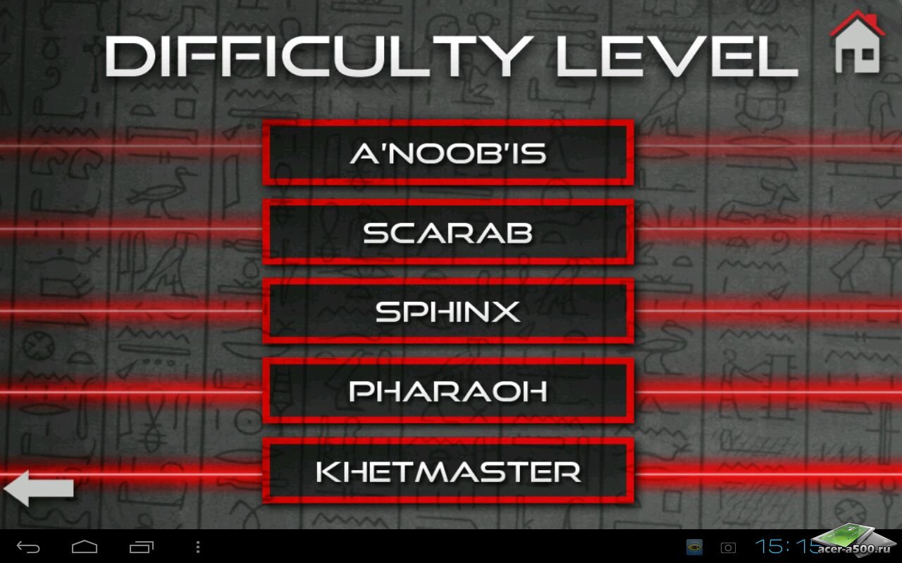 KHET это очень интересная игра, требующая очень большой сообразительности, где вам предстоит при помощи лазерного излучателя и зеркал уничтожить фигуры противника быстрее, чем он уничтожит ваши. Для этого используйте зеркала, перенаправляя луч в нужную сторону, зеркала можно не только вращать, но и перемещать, при этом за один ход вы сможете сделать только одну операцию! Это настоящий лазерный хит! Игра получила полностью переработанную графику с поддержкой HD. Играть можно с компьютером, друзьями в оффлайн и онлайн режимах!