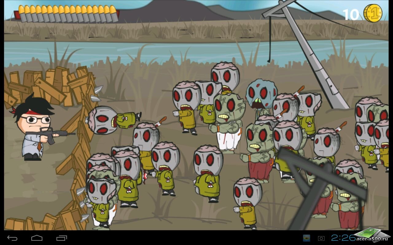 Эпоха человека подходит к концу, но он не сдается до конца, и вступает в свой последний бой. Отличная игра, чтобы скоротать время, на тему зомби. Берите ствол и начинайте стрелять по кровожадным существам, которые идут прямо на вас! Вас защищает небольшой забор, но зомби его могут с легкостью разрушить. Если вы не сдержали атаку зомби, и они начали ломать забор, то берите молоток и забивайте больше гвоздей, пока до вас не добрались, ну и отстреливаться тоже не забывайте!