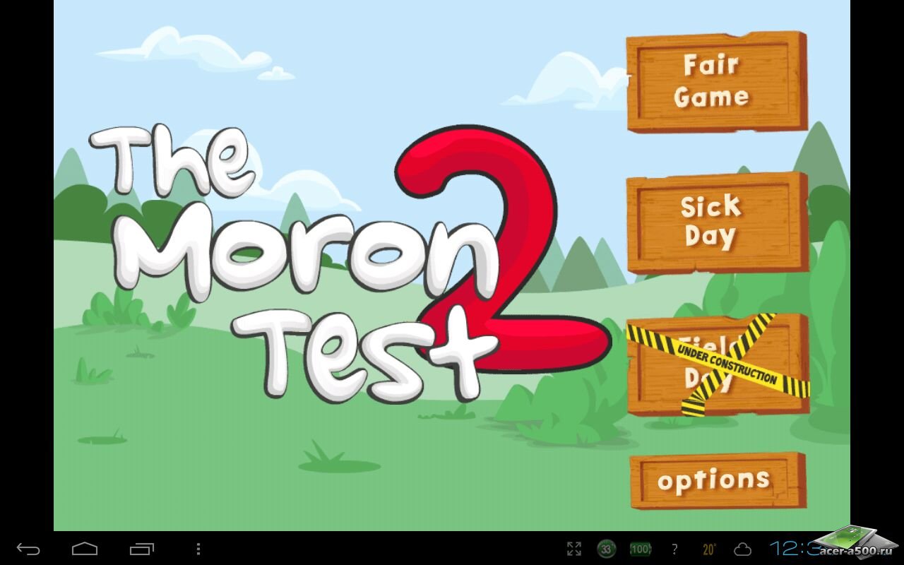 The Moron Test вернулся с новыми задачами на развитие мозгов! Вас ждут новые загадки, веселые анимации и многое другое. Вас ждут две секции с десятками головоломок, вам придется трогать, крутить и трясти. Игра выполнена с красивой графикой и веселой музыкой. Качайте и веселитесь прямо сейчас!