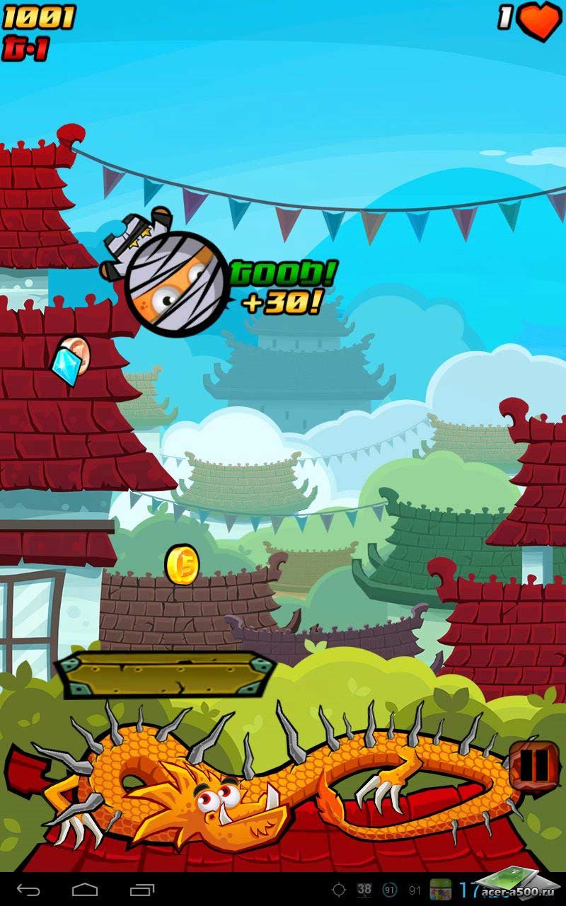 Gravity Ninja Deluxe - неплохая аркада чем-то напоминающая арканоид, где вам при помощи платформы нужно не дать прыгающему ниндзя упасть в яму с шипами вовремя подставляя ее к месту его падения. Делать это нужно так, чтобы ниндзя после отскока направился к месту скопления монет и других бонусов. Управление в игре двух типов: с помощью акселерометра и с помощью тачскрина. Постепенно сложность, которая заключается в увеличивающейся динамике, начинает возрастать! Соревнуйтесь с друзьями на количество заработанных очков!