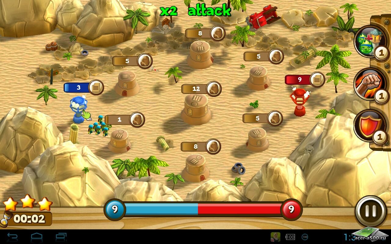 OutFight Gold - отличная стратегическая игра, где вам предстоит вести сражения, захватывая башни, в которых будут размещаться и преувеличиваться ваши солдаты. Без использования грамотного плана выиграть будет практически не возможно! Игра содержит 40 уровней, 13 игровых режимов, 10 талантов и 3 модификации для каждого таланта, 30 славных достижений, интересные задания и награды, а также удивительную графику и отличный звук!