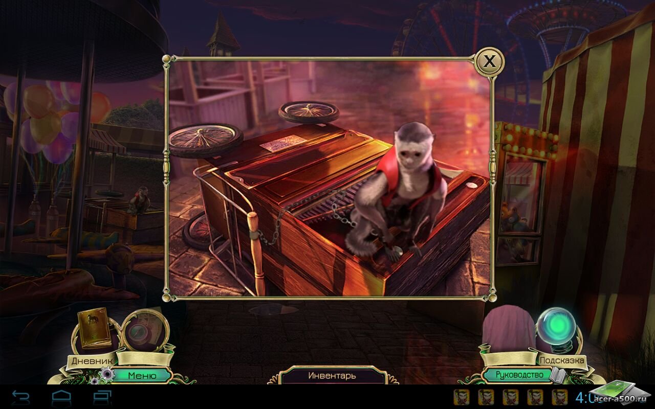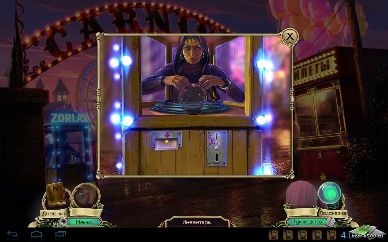 Dark Arcana: Тайна ярмарки - невероятное приключение, в котором вам придется столкнутся с воплощением зла! В город прибыла загадочная ярмарка, которая принесла с собой мрачную атмосферу и множество тайн. Вдруг неожиданно происходит исчезновение молодой женщины, и теперь только вы сможете разгадать тайну этого исчезновения. Сделайте это, пока еще не поздно! Вам предстоит узнать устрашающую легенду о некоем мистическом зеркале, которое является ключом ко всем судьбам. Вам предстоит исследовать два мира, мир в котором вы живете и мир, находящийся в ярмарочной комнате смеха. Вам предстоит раскрыть тайну Лукавого - древнего существа, узнать о трагической истории ярмарочника, который много лет назад случайно убил свою невесту. Вам предстоит исследовать зловещие и в то же время красочные локации, а также предотвратить очередное преступление Лукавого! В игре вас ждет 48 зловещих и загадочных локаций, 18 сцен со скрытыми предметами, 28 сложных мини игр, 21 достижение и бонусная глава!