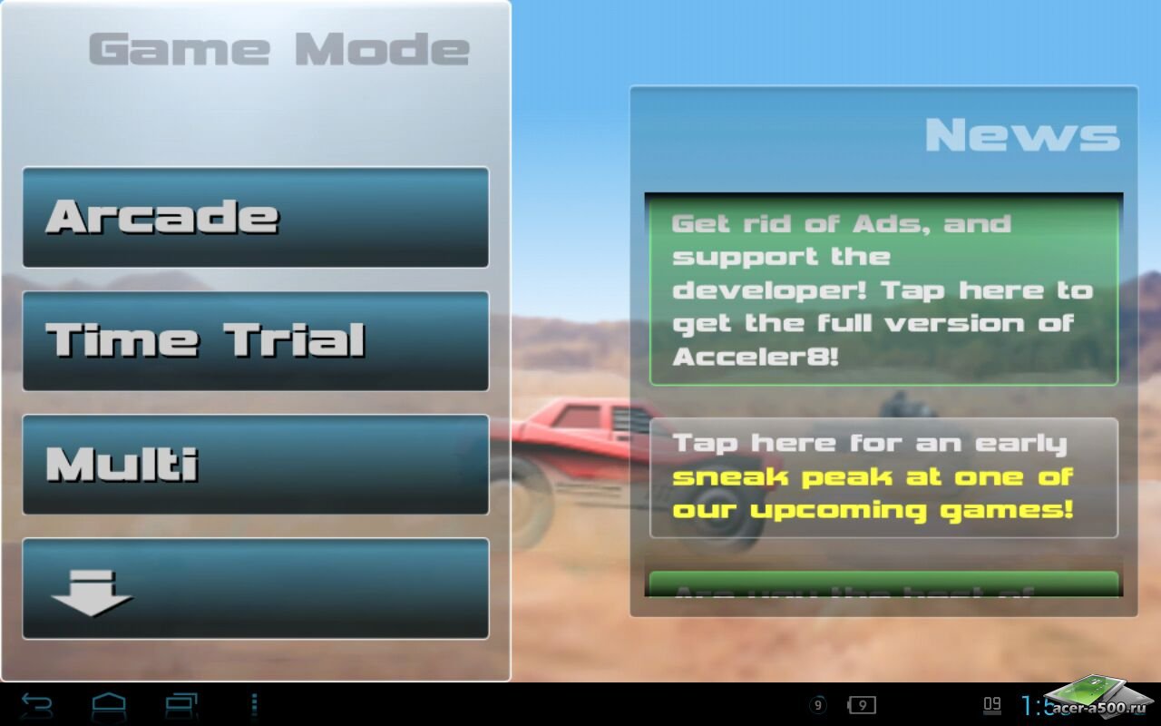 Acceler8 Pro - отличные футуристические гонки по бездорожью не для слабонервных! В этой игре вы испытаете адреналин, проверяя навыки вождения на пределе своих возможностей! Выпустите своего внутреннего демона скорости и мчитесь к победе! В игре вас ждет 13 треков в различных локациях, 3 игровых режима, включая многопользовательский режим по WiFi до 4-х игроков, а также потрясающие 3D визуальные эффекты! Выигрывайте гонки, зарабатывайте призовые деньги и расходуйте их на различные обновления, чтобы улучшить и ускорить свой авто. Игра имеет несколько вариантов управления и онлайн таблицу лидеров, что позволит вам соревноваться с игроками по всему миру!