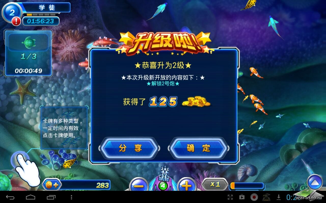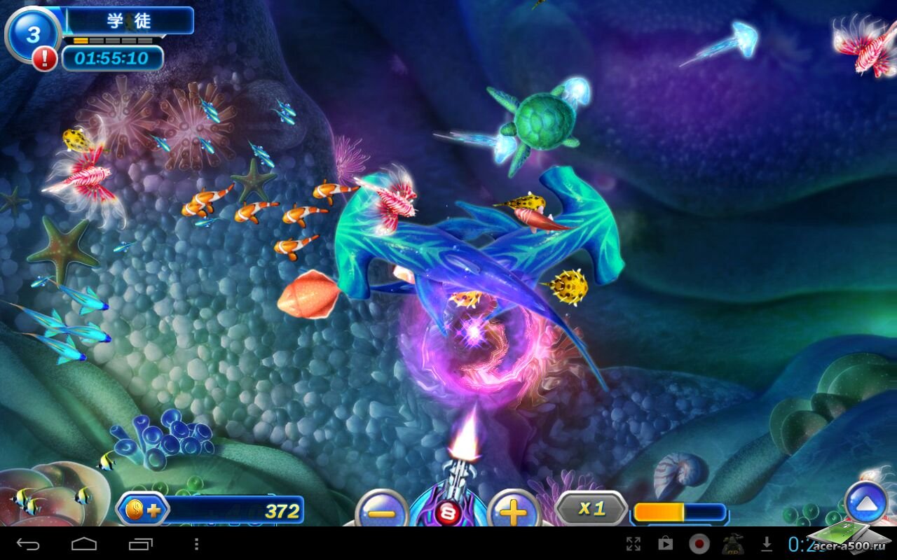 Fishing Joy 2 - игра в которой вам предстоит уничтожать различную морскую живность на дне океана с использованием разнообразного оружия. В начале игры вам дают некоторое количество золотых монет, которые требуется для ведения огня. Каждый выстрел из определенного оружия стоит некоторое количество золотых монет. Уничтожая рыбу вы зарабатываете дополнительные монеты. Ваша задача не допустить, чтобы закончились монеты, т.к. стрелять будет нечем и придется ждать их накопления, либо покупать через встроенный магазин. Тщательно прицеливайтесь и выбирайте оптимальный вид оружия, чтобы не оказаться на нуле! Модернизируйте оружие, чтобы увеличить боевую мощь. Чем мощнее оружие, тем больше золотых монет вы получаете в игре!