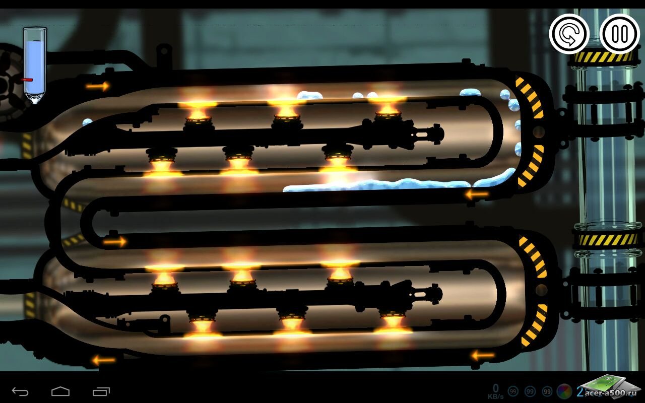 Puddle - игра, непохожая на другие, изначально выпущенная эксклюзивно для Tegra 3, теперь доступна на Tegra 2 и других Android устройствах. В этой игре вам предстоит взять на себя управление движущейся жидкостью, перемещая ее в нужном направлении с помощью наклона ландшафта вправо или влево! Здесь вы должны учитывать гравитацию, силу трения, температуру для различных типов жидкостей, таких как нефть, вода, раскаленная лава, нитроглицерин и других, обладающих различными особенностями и свойствами. Вам необходимо доставить в конечный резервуар как можно больше данной вам жидкости, преодолевая хищные растения, пылающие проходы и электрические разряды!