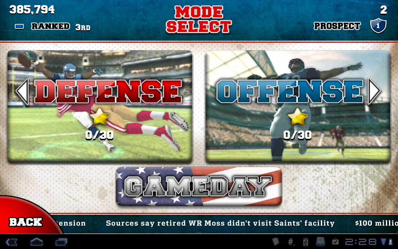 NFL Rivals - американский футбол. Ваша основная задача - заработать тачдаун. Для этого вы должны добежать до зоны противника. На пути вас ждут игроки команды противника, которые будут стараться сбить вас с ног, что приводит к проигрышу. Поэтому нужно всячески стараться увернутся от них. По пути нужно пробегать указанные квадраты, выполнять трюки, что дает вам больше победных очков. С каждым раундом игры на поле будут появляться большее количество игроков и препятствий. В игре отличная графика и удобный геймплей.