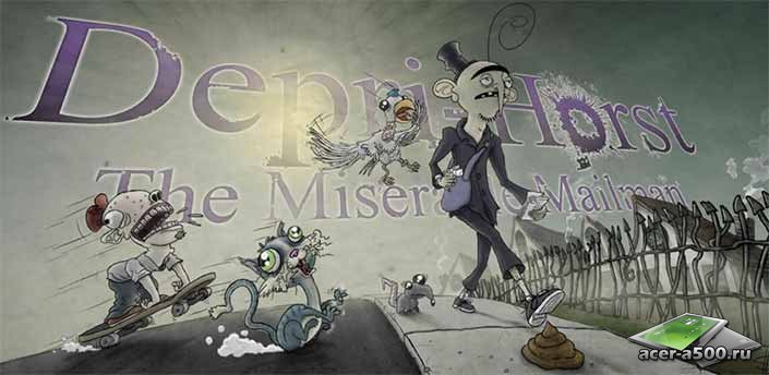 Depri-Horst - лучший симулятор почтальона, где вам предстоит непростая прогулка по улице, наполненной множеством препятствий! Касайтесь различных областей экрана во время прогулки, мотивируя персонажа прыгать, бросать письма или просто остановится на мгновение и подумать о своем ужасном существовании! Если ваш персонаж погибнет, то вам придется начать игру с последней контрольной точки. Игра получила хорошо прорисованную графику, хорошую музыку и довольно странных персонажей. На данный момент вы сможете пройти режим истории с 5 веселыми уровнями или поиграть в режиме выживания.