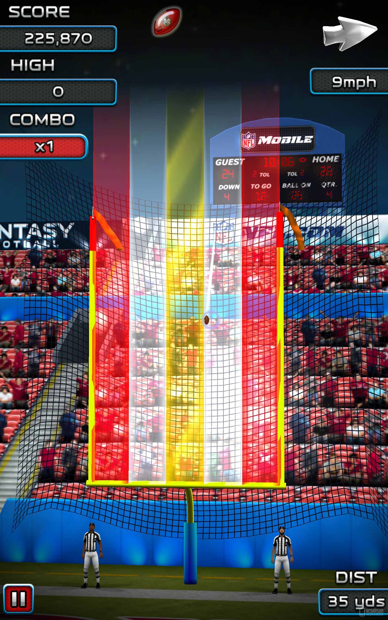 NFL Kicker 15 - спортивная игра для андроид от создателей NFL Quarterback! Здесь вы нападающий! Выберите свою любимую команду и начните испытания в новом 2014/15 сезоне NFL! Игра содержит все 32 официальные команды NFL и потрясающую графику высокого разрешения. Вам предстоит играть на самых удивительных стадионах, используя официальное снаряжение и униформы 2014 года! В игре содержится онлайн новостная лента, возможность обновления стадиона, профессиональные броски NFL и многое другое!