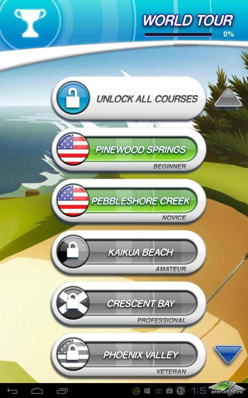 Играйте в самую захватывающую игру в гольф, которая когда-либо была на Google Play! Здесь нет клубов и правил, ваша задача как можно точнее положить мяч к центру лунки, а при самом удачном раскладе попасть в нее! Игра имеет несколько режимов: быстрый матч, чемпионат мира и быстрый матч про. В режиме чемпионата вам предстоит пройти множество уровней один за другим. При этом разблокировка последующий уровней для прохождения зависит от того на сколько успешно пройден текущий уровень. Отличная 3D графика и простое управление делают эту игру очень увлекательной.