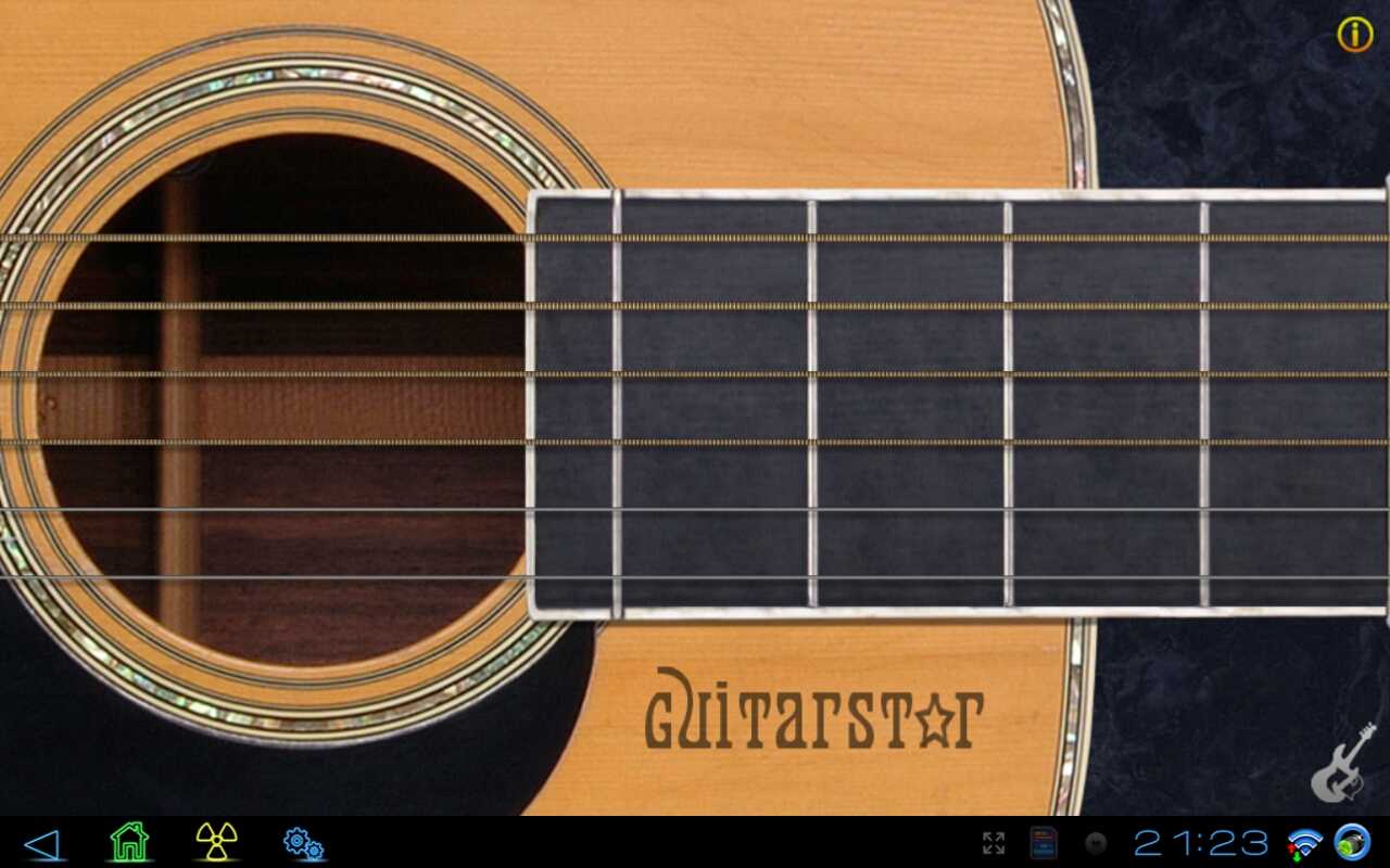 Оторвись с GuitarStar! Это приложение превратит ваш планшет в коллекцию из 6 гитар! Актуальные звуки реальной гитары, с помощью которых вы сможете сыграть любую песню на вашем планшете. В приложении представлены следующие виды гитар: электрогитара, акустическая гитара, бас-гитара, рок-гитара, гавайская гитара, 5-ти струнная банджо. С каждой из них вы сможете воспроизвести различный тип музыкальных композиций, ограниченный только вашим сознанием.