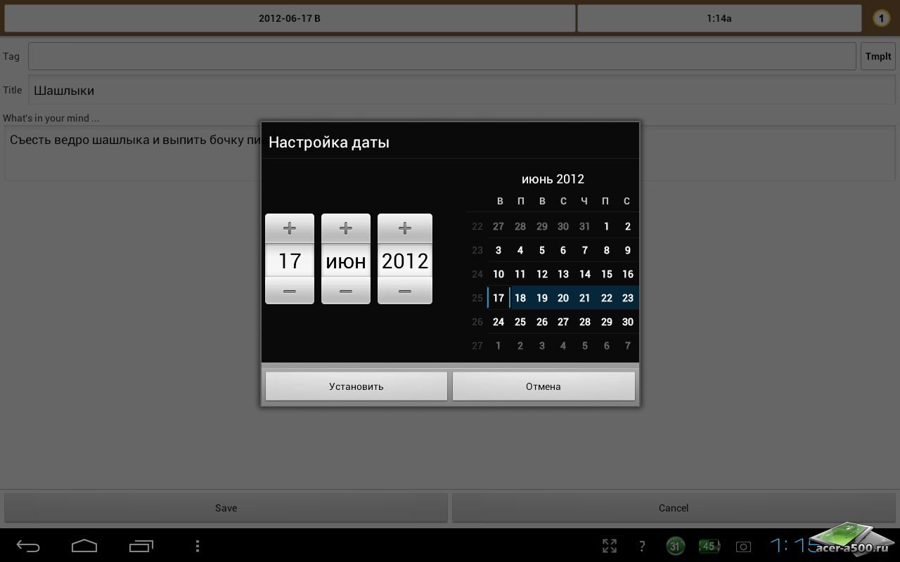 Journal - Orange Diary Pro - одно из лучших приложений - ежедневников. Управлять записями можно используя метки, иконки, календарь, корзину, напоминания, шаблоны и привязку. Вы можете создать заметки: текстовую, сфотографировать заметку при помощи фотокамеры, заметку в виде картинки из внутренней памяти, видео заметку, аудио заметку и заметку с записью голоса. Имеется возможность изменять цвет фона пользовательского интерфейса, а также шрифт, формат даты/времени, цвет текста и его размер. Приложение поддерживает импорт/экспорт с SD карты, Google Docs, электронной почты, Google Calendar и Google Blogger. Свои заметки можно защитить паролем.